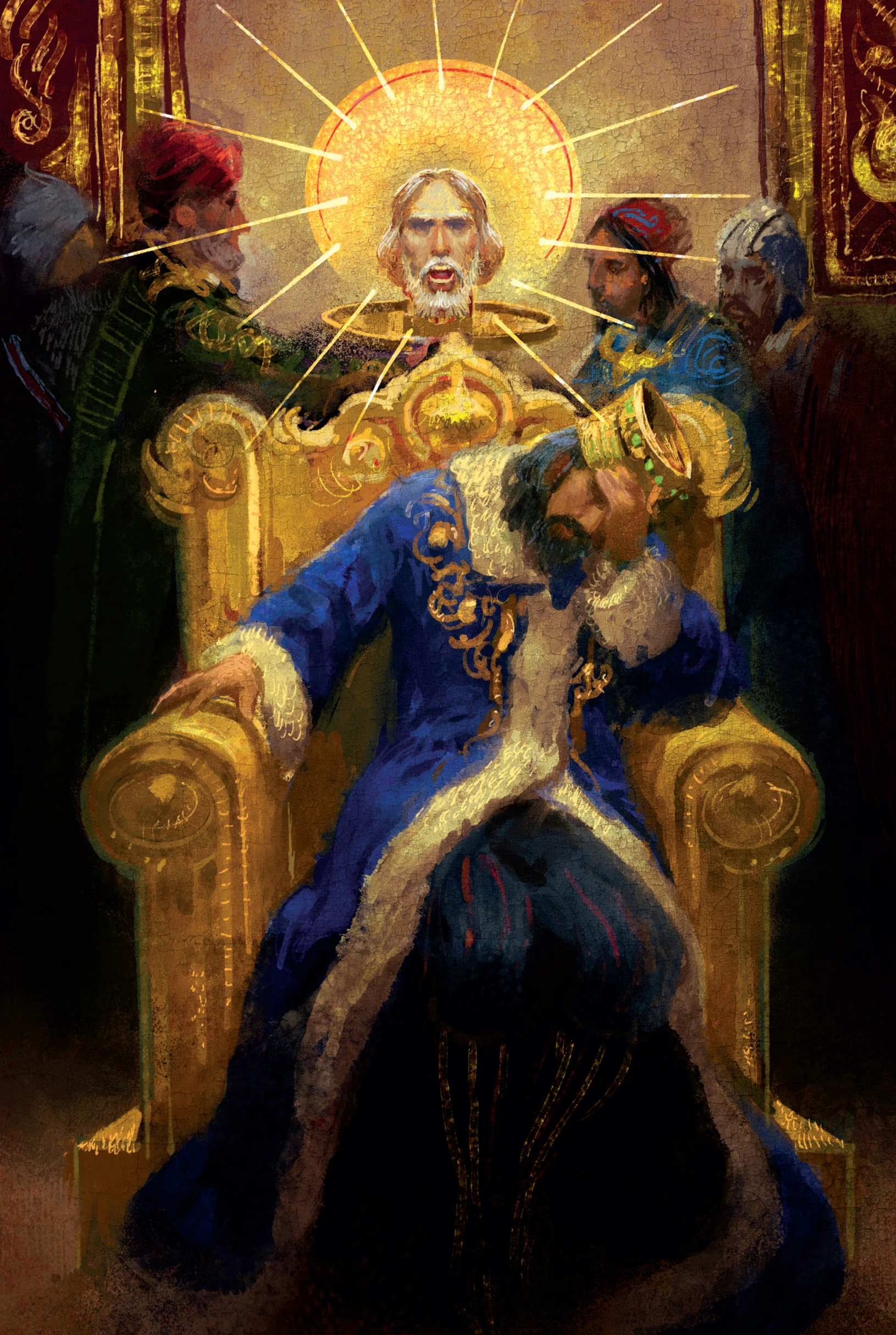 The king made his son vow in front of the entire court to keep Lukin as an advisor, and that if he agreed to this, he would be named the heir. When the king died, the second son's first order was to have Lukin executed. Lukin's head was cut from his body, and for a moment there was silence. However, Lukin began to speak again, even though he was nothing but a severed head. The new king was forced to honor his vow and reinstate Lukin as his advisor. They placed Lukin's head on a platter, where he advised the king from then on.